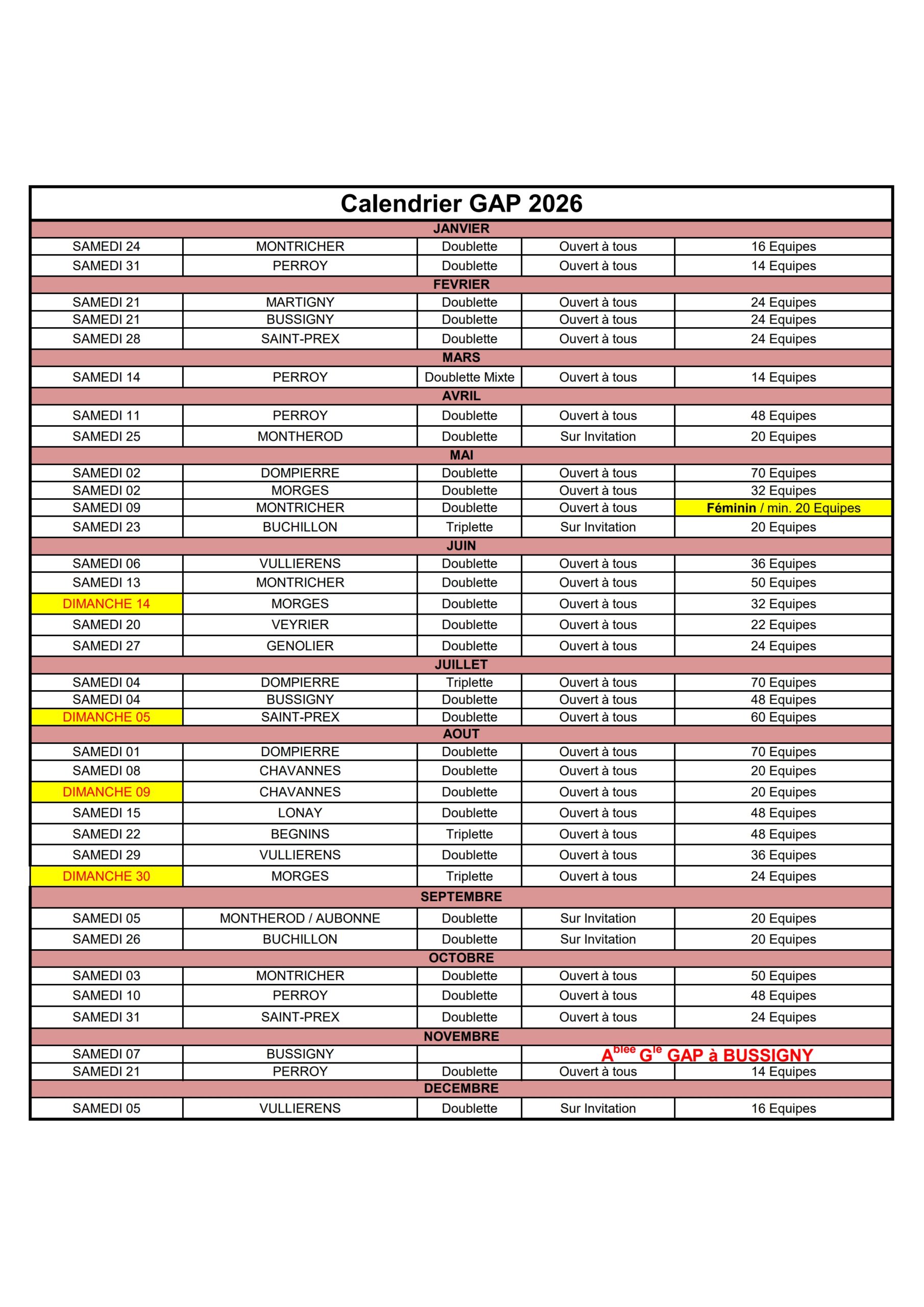 LISTE DES CONCOURS